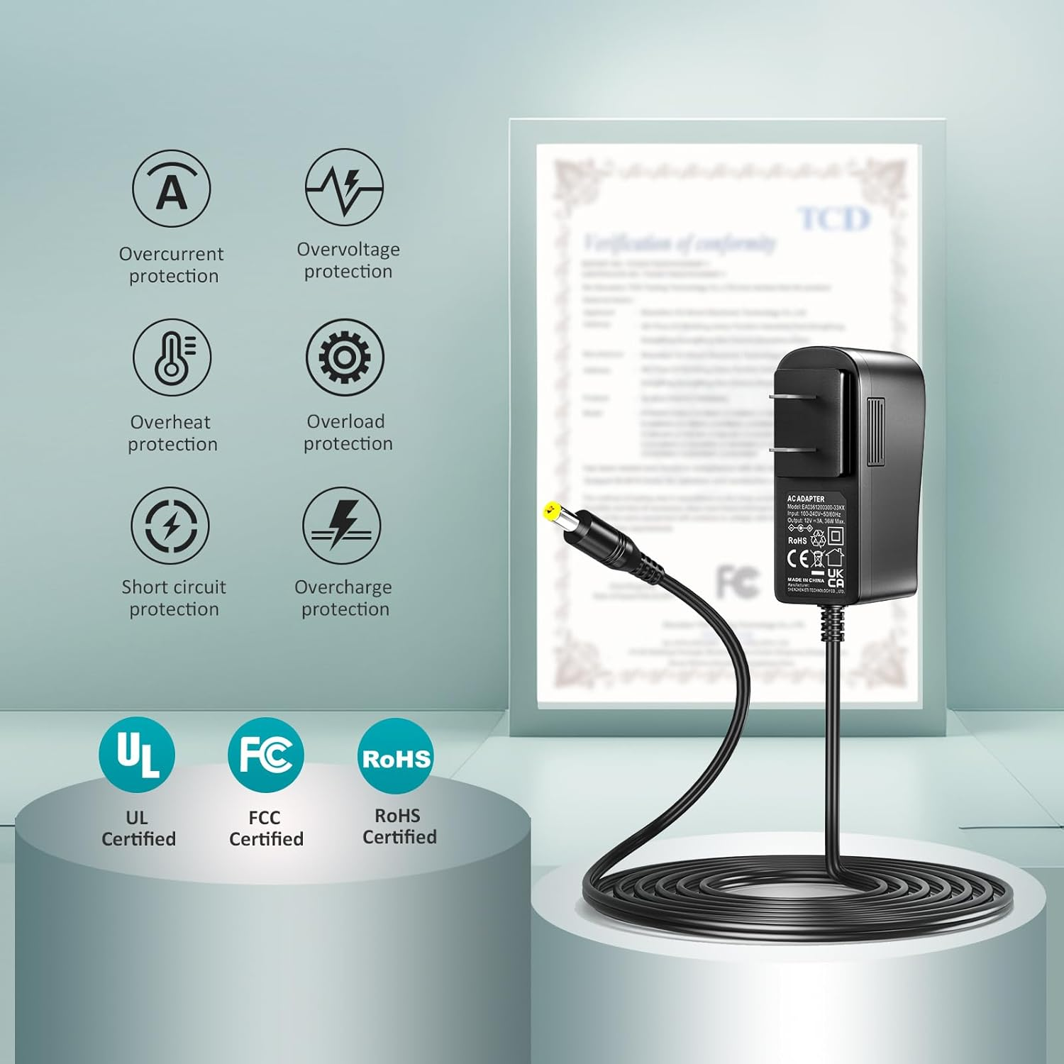 【Wide Applications】-- 12V 3A Power adapters are in high demand for audio amp boards, portable powered speakers, cable boxes, LED light strips, LCD monitor, wireless routers, CCTV cameras, DC motors, 3D printers, computer projects, HUB, Switches, audio/ video power supply, and Arduino controllers to provide a safe and stable power supply for your creation.