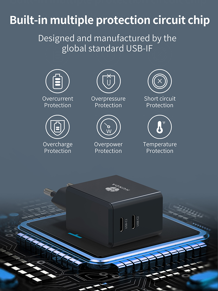 | Output | USB-C : 5V/3A, 9V/3A,12V/3A, 15V/2.33A, 20V/1.75A PPS: 3.3V-11V/3A(Max) USB-C + USB-C : 5V/ 4A USB-C Use Alone: 35W |